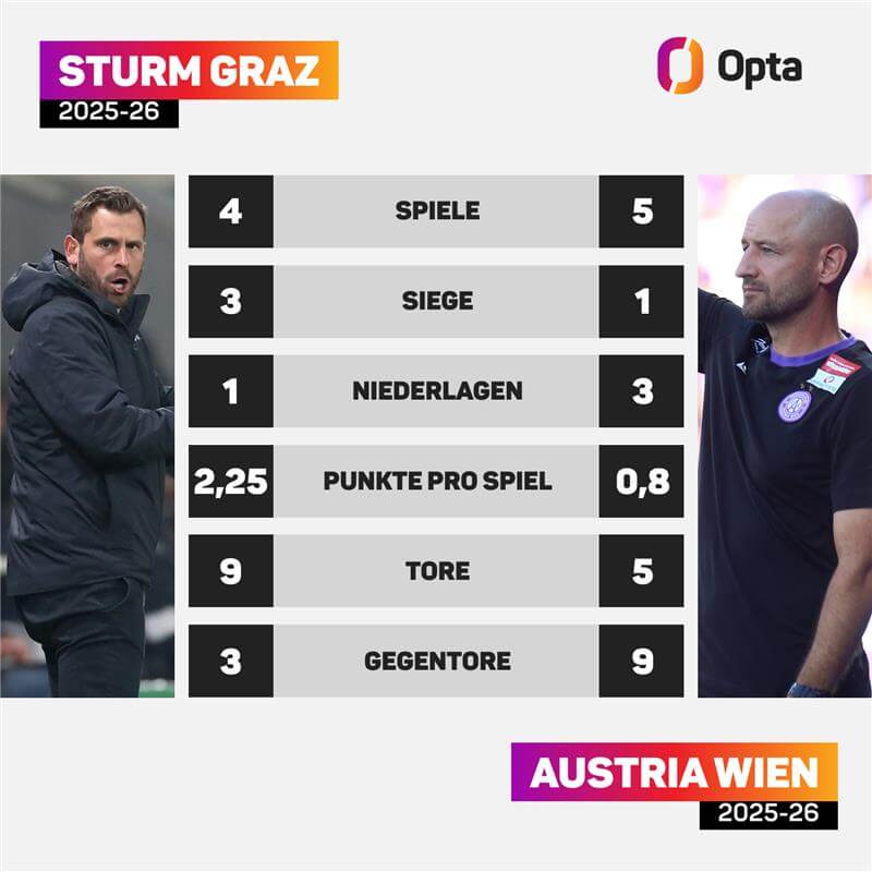 Doch in der abgelaufenen Saison avancierte die Wiener Austria zum Sturm-Kryptonit: Im Grunddurchgang trennte man sich zweimal remis (je 2:2), ehe die Veilchen in der Meistergruppe beide Duelle gewannen (2:1, 1:0) und damit erstmals seit 2009/10 wieder in einer Bundesliga-Saison gegen den SK Sturm ungeschlagen blieben. Kann das Team von Cheftrainer Stephan Helm nach der Länderspielpause an den Dreier gegen Altach anknüpfen und den nächsten Erfolg gegen die Steirer feiern?