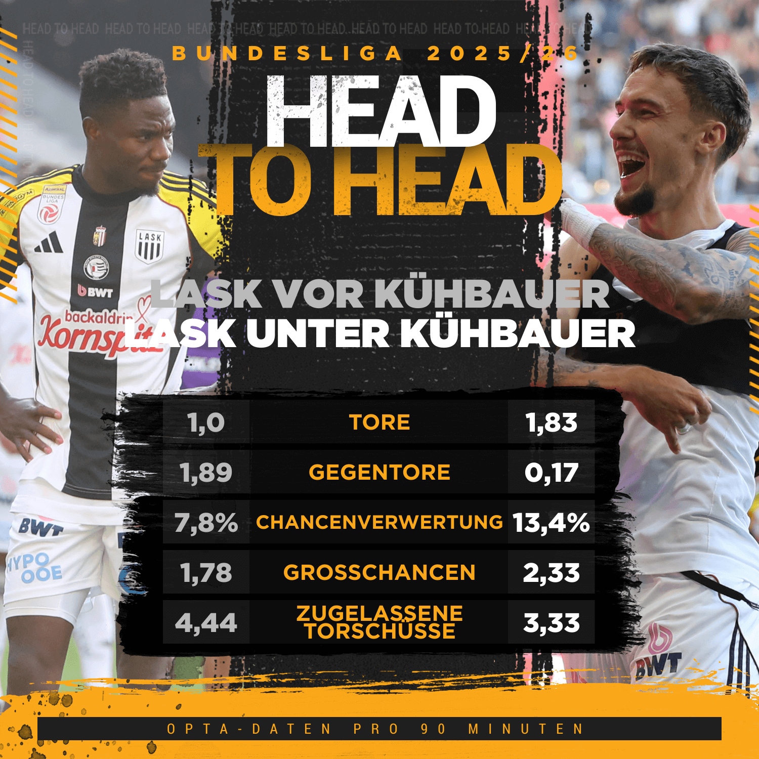 Doch Kühbauer hat sein Erfolgsrezept aus der Saison 2022/23 offenbar aufbewahrt – oder sein Erfolgsrezept aus Wolfsberg mitgebracht – und einen regelrechten Traumstart hingelegt. Die ersten sechs Ligaspiele sowie das Cup-Achtelfinale gewannen die Oberösterreicher allesamt. Nur zwei Monate nach Kühbauers Übernahme liegt der LASK plötzlich nur noch einen Punkt hinter Tabellenführer RB Salzburg – während der WAC parallel nur ein Spiel gewinnen konnte (4 Niederlagen!) und auf Platz 7 abrutschte.