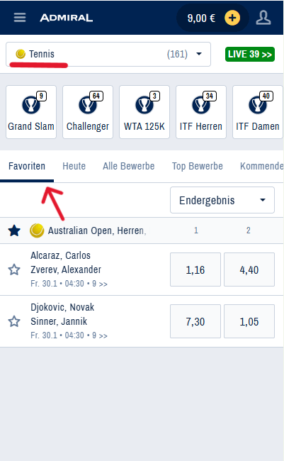 Jede einzelne Sportart enthält ebenfalls den Menüpunkt „Favoriten“. Je nachdem, wo du dich gerade auf unserer Seite befindest, werden nur jene Wettbewerbe angezeigt, die für diesen Bereich relevant sind. Gehört etwa die EuroLeague zu deinen Lieblingswettbewerben, erscheint auch nur diese Liga, wenn du Sportart „Basketball“ ausgewählt hast.