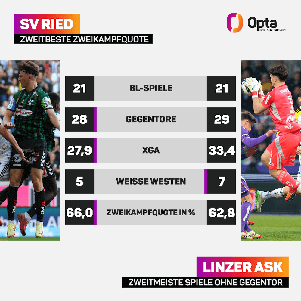 Nun allerdings wartet Linz seit drei Pflichtspielen auf einen Sieg (2 Unentschieden, 1 Niederlage), die SV Ried ist im Kalenderjahr 2026 sogar noch gänzlich ohne Ligaerfolg (2 Unentschieden, 2 Niederlagen), hatte bislang nur beim 3:0 im Pokal gegen Rapid Wien Grund zum Jubeln. Als einziges verbliebenes Team im Cup-Halbfinale ist die Sportvereinigung somit allerdings noch ohne Gegentor im Wettbewerb!
