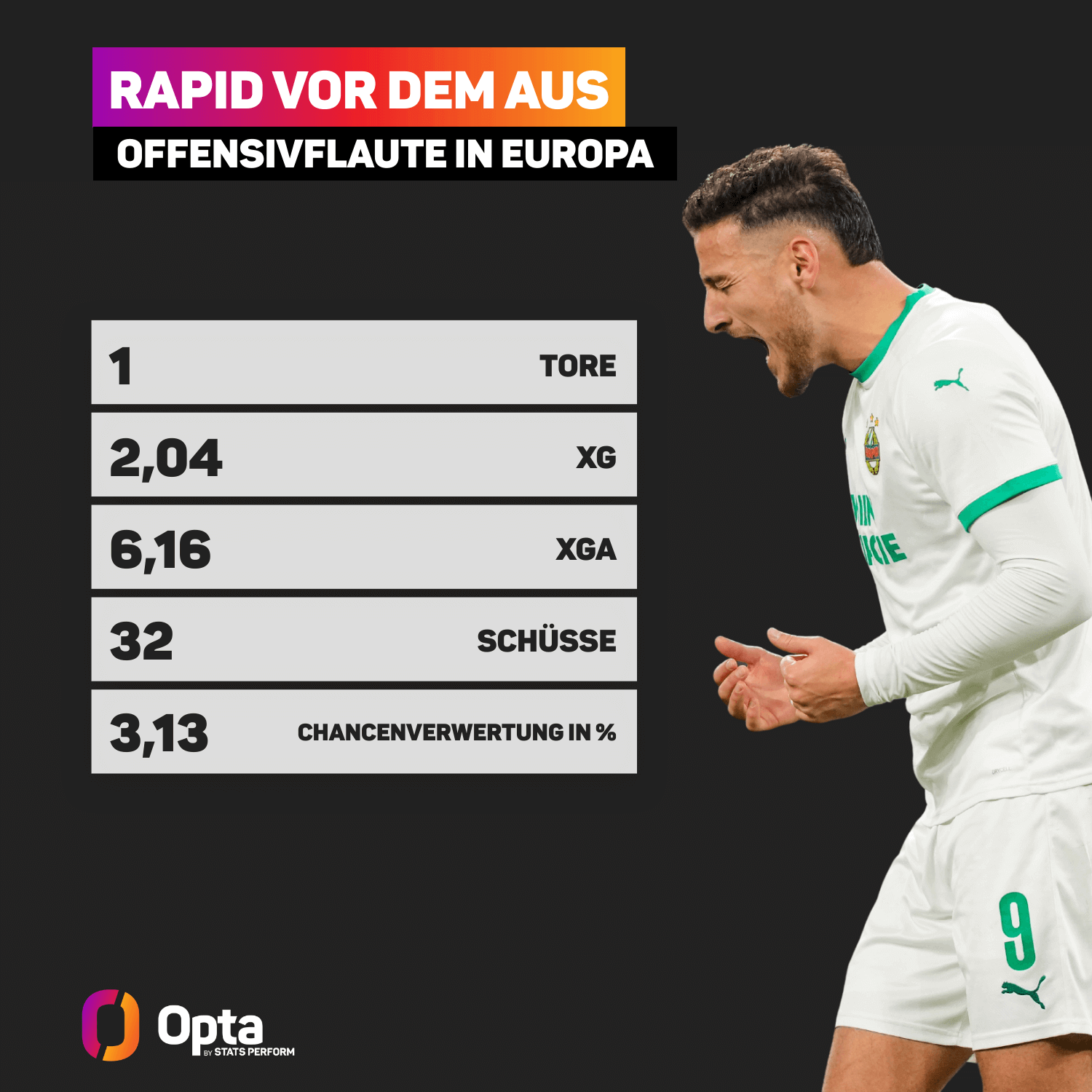 Während die Grazer und Salzburger Chancen auf ein Überwintern in Europa durchaus noch realistisch sind, könnte Rapids Conference-League-Abenteuer schon bald ein jähes Ende finden. Die Hütteldorfer starteten mit drei Niederlagen in ihre Europa-Reise und stehen auf dem letzten Platz. In der vergangenen Saison wurden mindestens sieben Zähler benötigt, um die Playoffs zu erreichen. Das bedeutet: Rapid braucht in den nächsten drei Spielen mindestens zwei Siege und darf am Donnerstag um 18:45 Uhr bei Rakow Tschenstochau unter keinen Umständen verlieren!