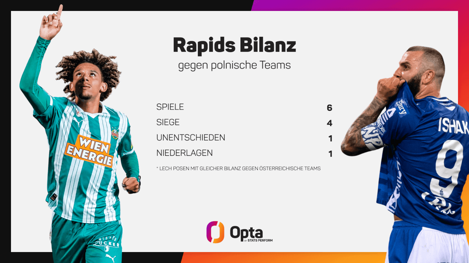 Um diese zu erreichen, müssen sich die Posner jedoch vor allem vor heimischem Publikum steigern. Blickt man auf alle Pflichtspiele der Saison (inklusive Supercup, Champions-League- und Europa-League-Qualifikation), so gewannen sie nur 30 Prozent ihrer Heimspiele (3 von 10). Bereits fünfmal verließ Posen das Enea Stadion als Verlierer. Ein starker Kontrast zu ihren Leistungen in der Conference League in der Saison 2022/23, als sie letztmals international spielten. Damals verloren sie nur zwei ihrer zwölf Begegnungen im Wettbewerb (6 Siege, 4 Unentschieden) und blieben in vier der letzten fünf Heimspiele ohne Gegentor.