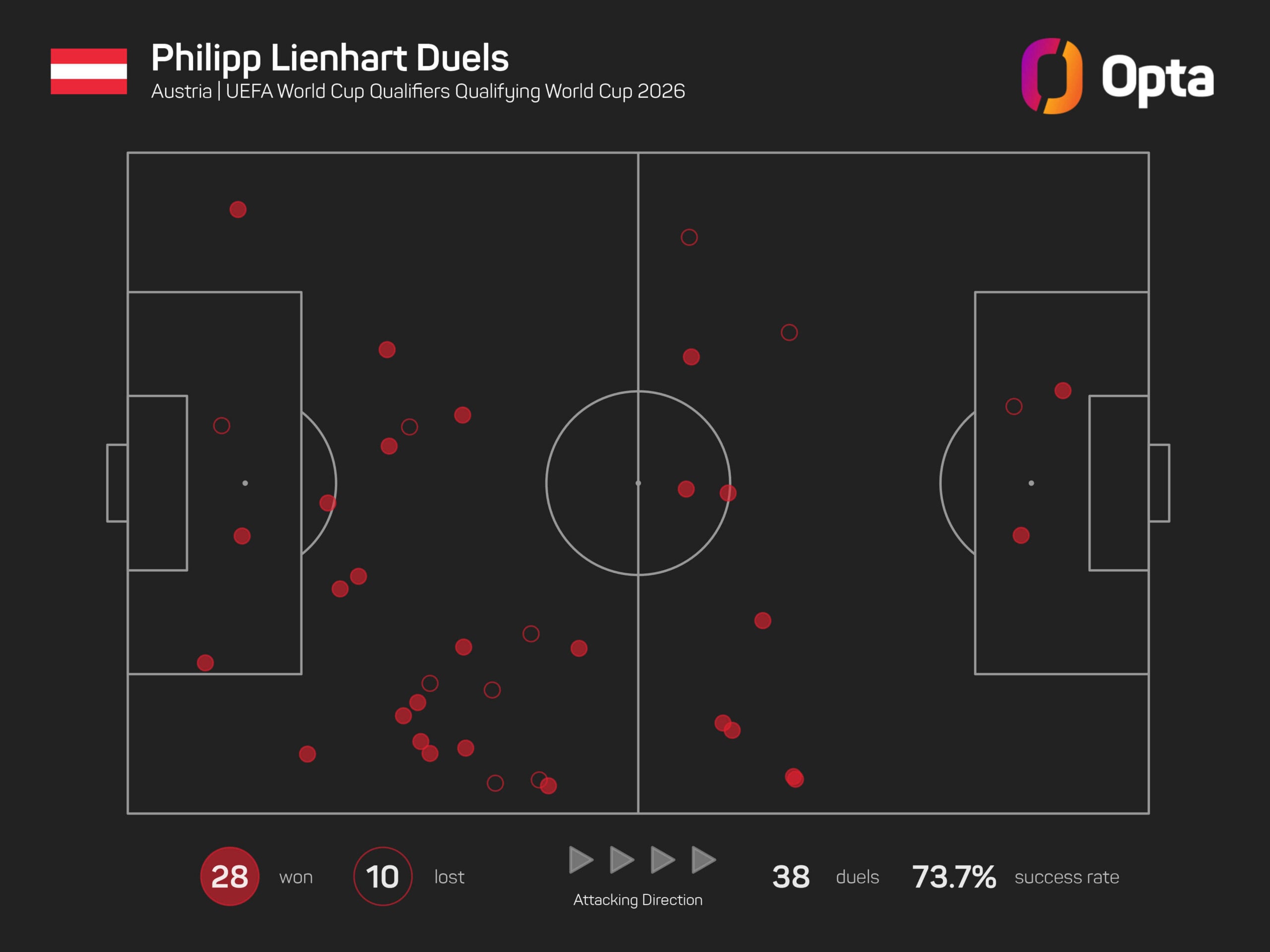 Gut möglich, dass Lienhart bei der WM im Sommer der heimliche Abwehrchef ist – und nicht der wesentlich erfahrenere David Alaba, der bei Real Madrid im Verein keine große Rolle mehr spielt und in den letzten Jahren oftmals verletzungsgeplagt war. In der Qualifikation kam der 33-jährige Wiener nur auf vier Startelfeinsätze und zeigte sich dabei gewohnt ballsicher (247 von 283 Pässe angekommen, 73 Pässe ins letzte Drittel, 5 Chancen kreiert), offenbarte defensiv aber Schwächen (nur 5 von 14 Zweikämpfe gewonnen, 0 von 2 Tacklings erfolgreich, aber 8 klärende Aktionen). Auch in den Testspielen musste Alaba seinen Kontrahenten Marco Friedl und Kevin Danso den Vortritt lassen und spielte lediglich 30 Minuten (Einwechslung gegen Südkorea).