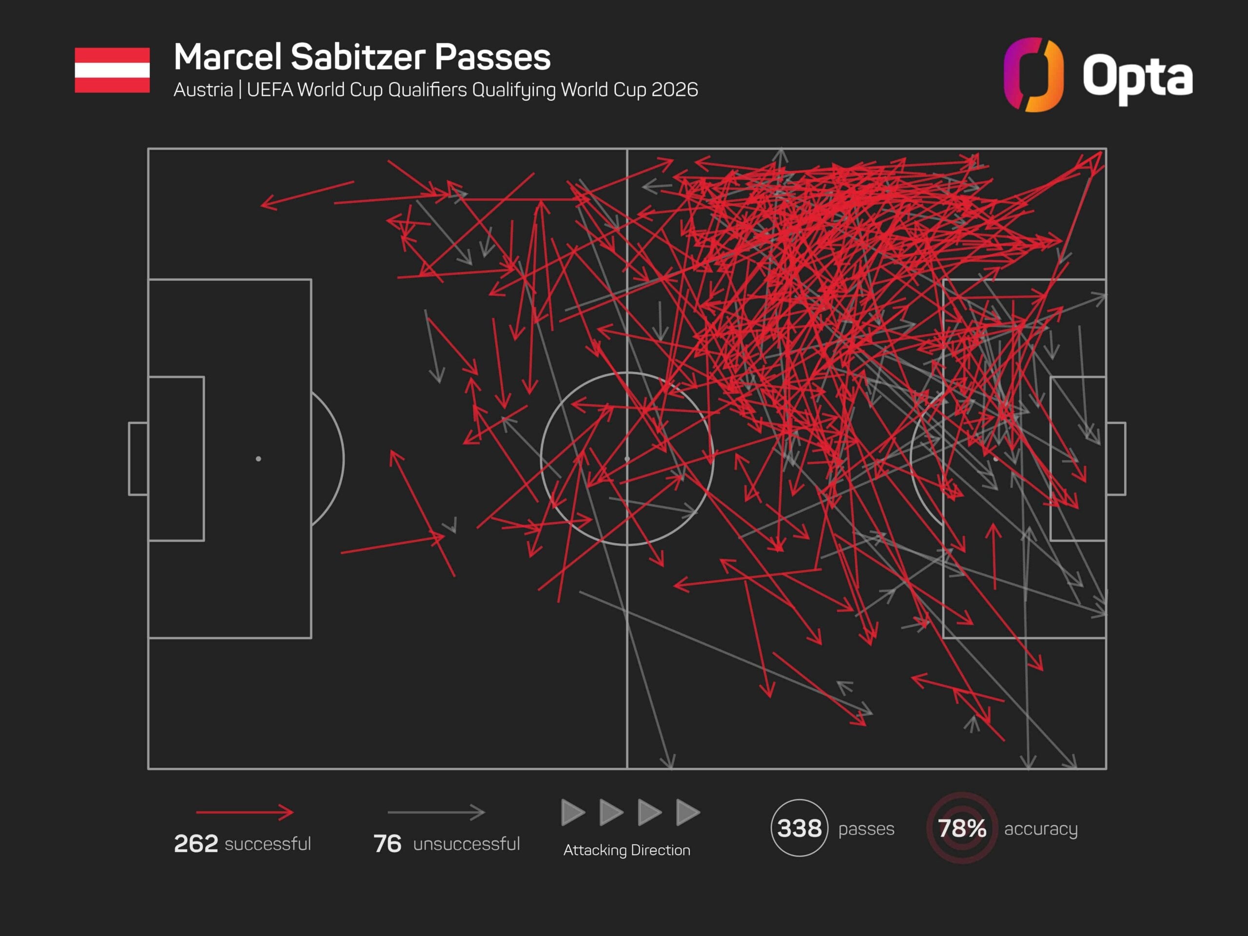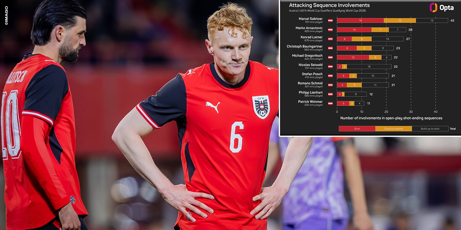 Österreichs zweitbester Scorer in der Qualifikation war aber nicht etwa Gregoritsch, sondern Mittelfeldspieler Marcel Sabitzer (Borussia Dortmund). Der 32-Jährige steuerte drei Tore und drei Assists zum ÖFB-WM-Ticket bei und kreierte zudem die mit Abstand meisten Chancen seines Teams (13, davon 3 Großchancen). Der gebürtige Oberösterreicher war darüber hinaus mit den meisten angekommenen Pässen in der gegnerischen Hälfte (227, 83,3 Prozent Passgenauigkeit) und Pässen, die im letzten Spielfelddrittel endeten (198), Österreichs Passkönig, seine 24 Abschlüsse und 16 Schüsse auf das Tor waren ebenfalls ÖFB-Topwert. Zudem hatte auch Sabitzer mit fünf hohen Ballgewinnen (Platz 4 im ÖFB-Vergleich) großen Anteil an Österreichs erfolgreichem Offensivpressing. Als einziger Offensivspieler stand er in jedem Qualifikationsspiel in der Startelf und ist damit ein unverzichtbarer Schlüsselspieler für Rangnick.