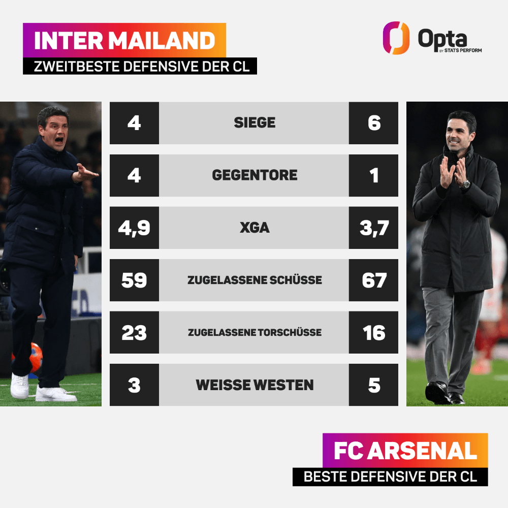 Der Knackpunkt wird dabei für beide Teams die Defensive sein. Denn: Es treffen die beiden defensivstärksten Mannschaften des laufenden Wettbewerbs aufeinander. Beide haben die wenigsten Gegentore und die wenigsten Expetected Goals Against kassiert und liegen auch bei zugelassenen Schüssen und zugelassenen Schüssen auf das eigene Tor im oberen Drittel. Beide haben zudem noch keinen Fehler gemacht, der direkt zu einem Gegentor führte, und die beiden besten Keeper des Wettbewerbs in ihren Reihen: Arsenals David Raya hat 93,75 Prozent der Schüsse auf seinen Kasten pariert, Yann Sommer immerhin 82,6 Prozent. Unter diesen Umstände scheint eine Wette auf eine torarme Partie am sichersten – wie schon in der Vorsaison (1:0).